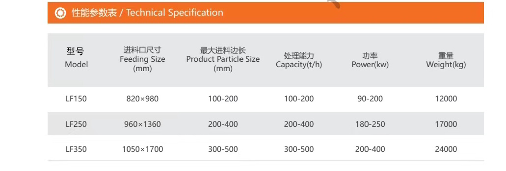 适用物料:抗压程度不超过300Mpa,表面水分不大于8%-10%的矿石、岩石。