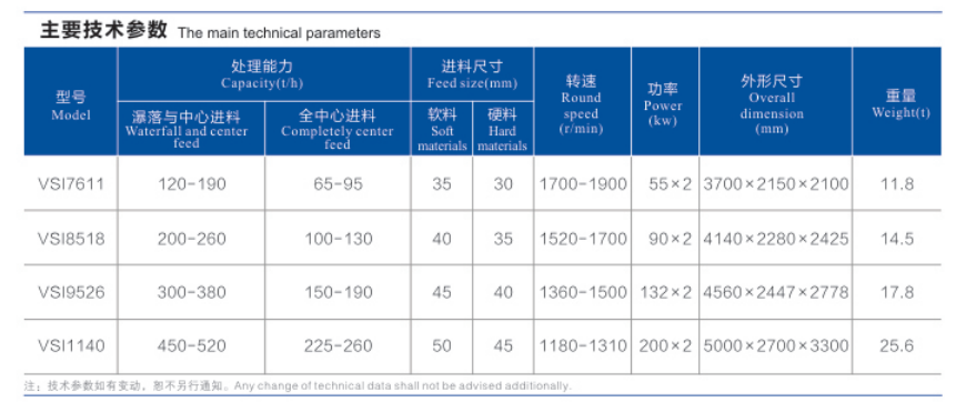 (1)制砂机物料处理量大、而且产量高,每小时较高可产500吨,与同等功率下的传统设备相比,产量提高了45%,稳定可靠;(2)产品呈立方体、粒形均匀,非常适合人工制砂和石料整形,比传统制砂设备、整形效果提高50%;(3)新型制砂机采用进口原装稀油润滑站,安装有自动润滑和保养系统,使主轴轴承保持恒温,无需人工维护、而且使用年限较长;(4)在破碎腔中物料与耐磨件摩擦较少,比传统设备运行费用低40%,大大降低了设备的使用成本;(5)采用本公司较新*的液压装置、便于对破碎腔内部件检修和拆换。(6)采用国际上较*的自动检测装置,若设备出现不正常运转,会自动发出警告,使设备停止运转,减少对设备的损坏。
